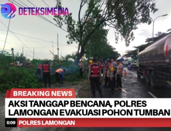 deteksimedia.com//LAMONGAN – Kepedulian dan kesiapsiagaan jajaran Polres Lamongan kembali terlihat saat melaksanakan aksi tanggap bencana evakuasi pohon tumbang yang menutup jalur poros wilayah Kecamatan Sukodadi, Kabupaten Lamongan, pada Senin (20/10).