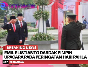 SURABAYA,Deteksimedia.com – Sebagai rangkaian peringatan hari pahlawan ke 80 Tahun 2025, pemerintah Provinsi Jawa Timur (Pemprov Jatim) gelar upacara peringatan hari pahlawan nasional di tugu pahlawan surabaya dengan tema Pahlawanku teladanku, Terus bergerak Melanjutkan perjuangan Peristiwa bersejarah peringatan hari pahlawan 10 November 2025 (WAGUB) Wakil Gubernur jawa timur Emil Elestianto dardak pimpin langsung upacara Peringatan hari Pahlawan tingkat Provinsi Jawa timur, Senin 10/11 pagi.