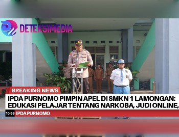 deteksimedia.com//LAMONGAN – Ipda Purnomo memimpin apel di SMKN 1 Lamongan pada Senin, 20 Oktober 2025, dengan fokus utama memberikan edukasi kepada para pelajar mengenai bahaya narkoba, judi online, serta pentingnya bijak dalam menggunakan media sosial.