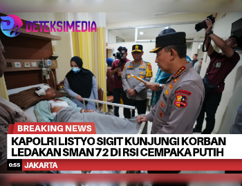 JAKARTA,Deteksimedia.com – Kapolri Jenderal Polisi Listyo Sigit Prabowo mengunjungi para korban ledakan di SMAN 72 Kelapa Gading, Jakarta yang kini dirawat di Rumah Sakit Islam (RSI) Cempaka Putih Jakarta, Sabtu (8/11/2025). Listyo datang didampingi oleh Kapolda Metro Jaya Irjen Pol Asep Edi Suheri dan Kapolres Metro Jakarta Pusat Kombes Polisi Susatyo Purnomo Condro.