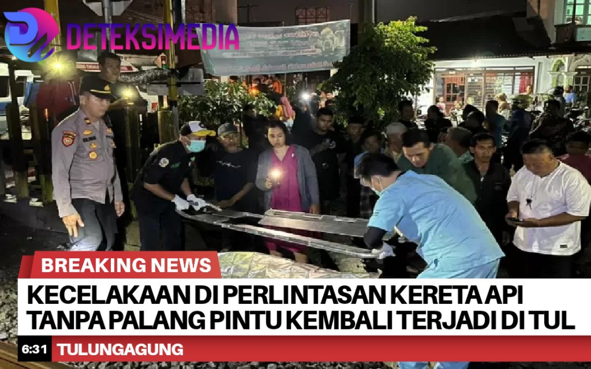 TULUNGAGUNG, Deteksimedia.com 1 November 2025 – Kecelakaan di perlintasan kereta api tanpa palang pintu kembali terjadi di Tulungagung, tepatnya di Desa Sumberdadi, Kecamatan Sumbergempol, pada Selasa (28/10/2025) malam. Seorang remaja pengendara motor mengalami luka berat setelah tertabrak kereta api (KA) Majapahit yang melintas dari arah Tulungagung menuju Blitar.