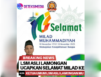LAMONGAN,Deteksimedia.com – Ketua Umum LSM Asli Lamongan, Muhammad Wahid S.Pd.I, M.Pd, menyampaikan ucapan selamat Milad ke-113 kepada seluruh jajaran dan warga Muhammadiyah. Apresiasi ini disampaikan atas peran Muhammadiyah yang selama lebih dari satu abad telah memberikan kontribusi nyata bagi kemajuan dan kesejahteraan bangsa Indonesia.