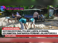 Gotong Royong, Polsek Laren, Koramil, Kecamatan, dan Warga Perbaiki Jalan Poros Utara