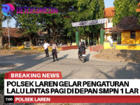 Polsek Laren Gelar Pengaturan Lalu Lintas Pagi di Depan SMPN 1 Laren, Arus Lalin Lancar