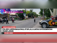 Polsek Laren Siaga Pagi, Atur Lalu Lintas di Perempatan Pasar Laren