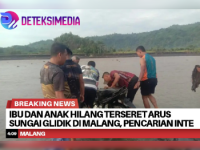Ibu dan Anak Hilang Terseret Arus Sungai Glidik di Malang, Pencarian Intensif Dilakukan
