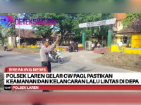 Polsek Laren Gelar CW Pagi, Pastikan Keamanan dan Kelancaran Lalu Lintas di Depan SMPN 1 Laren