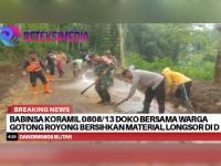 Babinsa Koramil 0808/13 Doko Bersama Warga Gotong Royong Bersihkan Material Longsor di Desa Resapombo