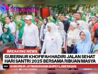Gubernur Khofifah Hadiri Jalan Sehat Hari Santri 2025 Bersama Ribuan Masyarakat Lamongan, Pesankan Nilai Juang Santri bagi Pembangunan Bangsa