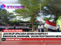 Jadi Irup Upacara Senin Di SMPN 01 Binangun, Danramil Yakini Pentingnya Menanamkan Nilai Disiplin Pada Siswa