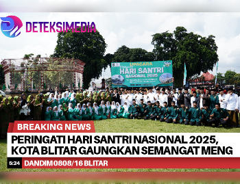 deteksimedia.com//BLITAR – Bertempat di Alun-Alun Kota Blitar, Jl. Merdeka, Kelurahan/Kecamatan Kepanjen Kidul, telah dilaksanakan Upacara Peringatan Hari Santri Nasional Tahun 2025 dengan tema “Mengawal Indonesia Merdeka Menuju Peradaban Dunia”, Rabu (22/10/2025). Kegiatan ini diikuti sekitar 1000 peserta dari berbagai kalangan, dengan H. Syauqul Muhibin, S.HI (Walikota Blitar) bertindak sebagai Inspektur Upacara.