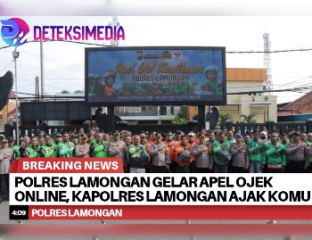 deteksimedia.com//LAMONGAN – Dalam rangka menjaga kondusifitas keamanan dan ketertiban masyarakat (kamtibmas) di wilayah Kabupaten Lamongan, Polres Lamongan menggelar Apel Ojek Online (Ojol) yang dipimpin langsung oleh Kapolres Lamongan AKBP Agus Dwi Suryanto, S.I.K., M.H., bertempat di halaman Mapolres Lamongan, Jumat pagi(24/10).