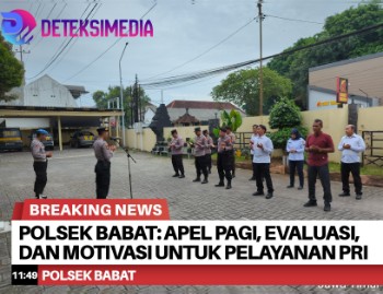 LAMONGAN,Deteksimedia.com – Polsek Babat mengawali setiap hari kerja dengan kegiatan apel pagi yang tidak hanya sekadar baris-berbaris, tetapi juga menjadi wadah untuk evaluasi kinerja dan pemberian motivasi kepada seluruh anggota. Apel pagi rutin ini dilaksanakan pada hari Senin, 17 November 2025, pukul 08.00 WIB di Mako Polsek Babat.