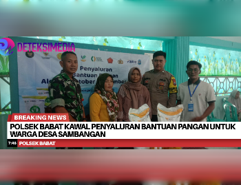 LAMONGAN,Deteksimedia.com – Polsek Babat turut serta mengawal penyaluran bantuan pangan alokasi bulan Oktober-November 2025 di Balai Desa Sambangan, Kecamatan Babat, Kabupaten Lamongan. Kegiatan ini bertujuan untuk memastikan bantuan tepat sasaran dan berjalan lancar.