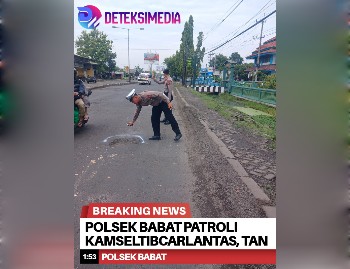 LAMONGAN,Deteksimedia.com – Polsek Babat melaksanakan patroli Kamseltibcarlantas (Keamanan, Keselamatan, Ketertiban, dan Kelancaran Lalu Lintas) dan memberikan tanda berupa cat pilot warna putih pada ruas jalan yang berlubang di sepanjang jalan Raya Babat-Lamongan, dari Simpang 3 Mira sampai dengan depan RSNU Babat. Kegiatan ini dilaksanakan pada hari Selasa, 11 November 2025, mulai pukul 09.00 WIB hingga selesai.