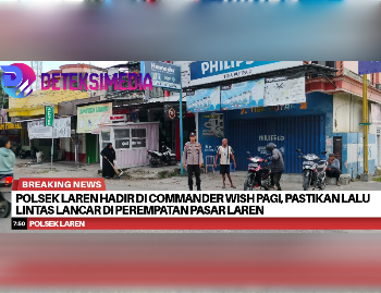 LAMONGAN,Deteksimedia.com – Kegiatan yang dimulai pukul 06.15 WIB ini melibatkan Aiptu Hamid dan Bripda Mirza. Mereka ditempatkan di perempatan Pasar Laren yang merupakan salah satu titik ramai di Kecamatan Laren.