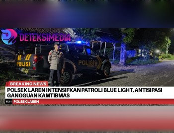 LAMONGAN,Deteksimedia.com – Polsek Laren, Polres Lamongan, meningkatkan kegiatan patroli blue light guna menjaga keamanan dan ketertiban masyarakat (Kamtibmas) di wilayah Kecamatan Laren. Patroli dilaksanakan pada Selasa, 11 November 2025, mulai pukul 23.30 WIB hingga selesai.
