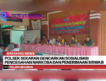 LAMONGAN,Deteksimedia.com – Polsek Sekaran menggelar kegiatan sosialisasi pencegahan bahaya narkoba dan sosialisasi pendaftaran siswa baru SMA Kemala Taruna Bhayangkara tahun ajaran 2026/2027 di Aula Pendopo Desa Kebalankulon, Kecamatan Sekaran, pada Senin (17/11/2025). Kegiatan ini menyasar siswa-siswi SMP Muhammadiyah 09 Kebalankulon dan MTs Maarif Kebalankulon, dengan total peserta mencapai 153 orang.