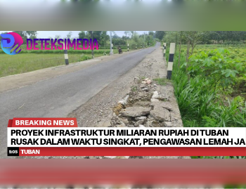 TUBAN,Deteksimedia.com 20 November 2025 – Harapan warga Tuban untuk menikmati infrastruktur berkualitas kembali pupus setelah sejumlah proyek bernilai miliaran rupiah justru mengalami kerusakan dalam waktu singkat. Kondisi ini menimbulkan pertanyaan serius mengenai kualitas pembangunan di daerah tersebut.