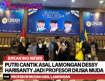 LAMONGAN, Deteksimedia.com – Kabar membanggakan datang dari dunia akademik, khususnya bagi masyarakat Lamongan. Salah satu putri terbaik daerah ini, Prof. Dr. Dessy Harisanty, S.Sos., M.A., resmi dikukuhkan sebagai Guru Besar Universitas Airlangga (Unair) Surabaya di Fakultas Vokasi. Dengan pencapaian ini, ia menjadi salah satu profesor muda asal Lamongan yang berhasil menorehkan prestasi gemilang di tingkat nasional.(29/10/2025)