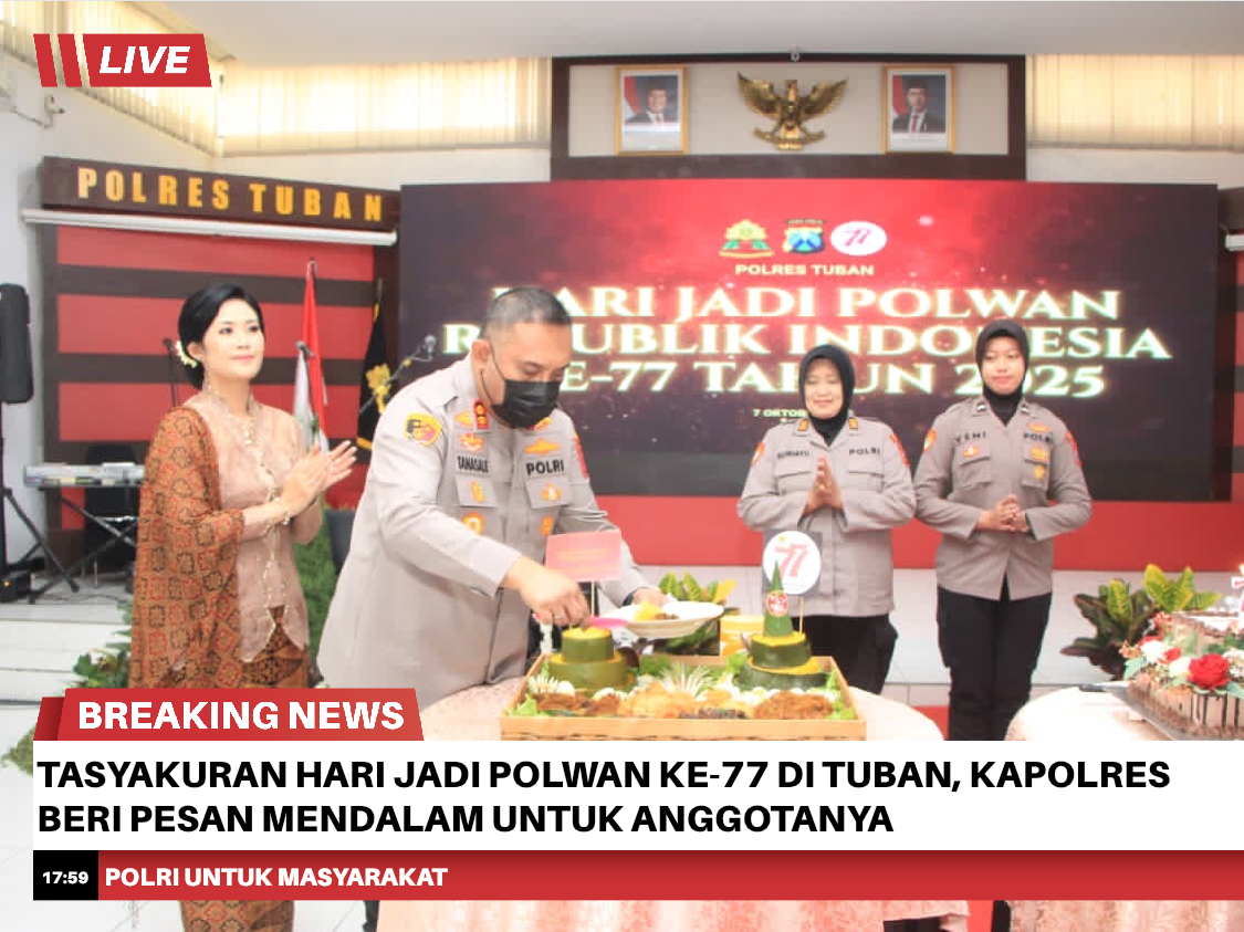 Tuban – Dalam rangka memperingati Hari Jadi ke-77 Polisi Wanita (Polwan) Republik Indonesia, Polwan Polres Tuban menggelar acara tasyakuran yang berlangsung di Aula Sanika Satyawada Polres Tuban.